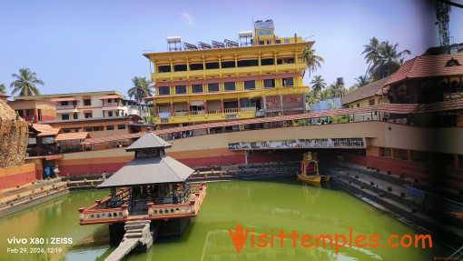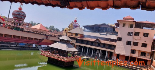 Udupi Shri Krishna Temple is located in a picturesque ambience among dense forestry in Karnataka. The Presiding Deity of this Temple is Lord Krishna who is an incarnation of Lord Vishnu. He Blesses His Devotees from His West facing Shrine in the form of a small boy. Due to His young age Udupi Krishna is called here as Bala Krishna. This Temple was built by Great a Vaishinavaite Saint Madhavachari in the 13th Century. Here Lord Krishna can be seen only through small holes found in the Kanakadasha Kindi installed in front of Lord Krishna. The Presiding Deity cannot be worshipped by Devotees by entering the Sanctum Sanctorum directly. Instead Devotees have to line up and have the darshan of their favourite God Bala Krishna through a nine hole window known as Navagraha Kidiki. Lord Krishna could be viewing from here and He is seen along with a flute in one hand. There is no artificial illumination or lighting in the Sanctum Sanctorum and He has to be viewing only with the aid of natural light and oil lamp. Due to several factors Udupi Krishna Temple is referred as Mathura of South India. There is a statue of the Great Saint Kanakadasha in a Mandapam that is constructed adjacent to the Sanctum Sanctorum. The Idol of Lord Krishna was found by Saint Madhavachari inside a huge ball of Gopichand. Saint Madhavachari ordered the Temple Management to install Lord Krishna's Idol facing West. There are Sub Shrines for Garudalwar, Anjaneyar, Pandarpur Vittal, Pillayar and Subramaniyar. There is a Navagraha enclosure too and close to it is a Deity for the Panchamuga Anjaneyar. There are several huge buildings relating to this Temple which is being used as Devasthanam and for other religious purposes. There is another huge building called Anna Brahmma where two floors are exclusively used for Annadhanam to all visiting Devotees. In case of any Medical Emergency the Temple runs a Dhanvanthri Medical Centre. There is a Vasantha Mandapam in which Divine funstions etc could be held. The amazing fact about Udupi Sri Krishna Temple is that it has been built with huge wooden frame and wood instead of cement and concrete. The Temple has a huge Pushkarani which is kept clean and several Divine Images are drawn all around this Sacred Tank. A small boat is available there for being used during the Float Festival or Theppostavam. There are two huge Chariots close to the Pushkarani. Since the Idol of Lord Krishna found in this Temple looks to be very beautiful everyday thousands of Devotees from different parts of India visit this Temple in order to get the Blessings of the Almighty. The Temple has a huge car parking space and all types of shops selling divine products and other pooja articles are spread all around the Temple. There are several eateries and AC resturants. Devasthanam cottages and AC Lodges too are available in plenty. Manipal which is very famous for its educational institutions and Universities is just 4 Kms away from Udupi and some prefer staying here and visiting Udupi to Pray before Lord Krishna.